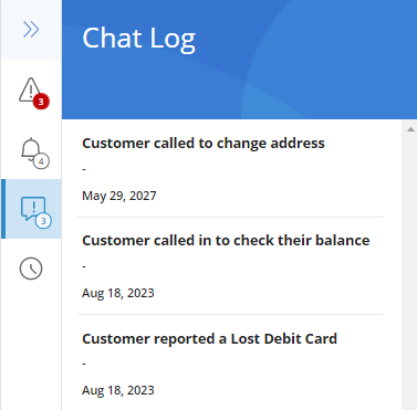 View comments about a customer or account that were added by a user. Previously, Chat Log was Contact addendas.